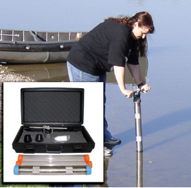 手推柱狀采泥器:可用于灘涂和淺水中的沉積物采樣。帶頭部組件,方便手推操作。帶3個橘皮閉合裝置,2個聚碳酸酯取樣管頭,2個CAB內(nèi)襯管。淺水采樣時可選購不同長度的推桿(1.5m,3m,4.5m)。采樣管長508mm,其他長度(914mm , 1219mm, 1524mm,2438mm)采樣管可訂購。也可以通過繩纜操作,作為重力柱狀取樣器使用。