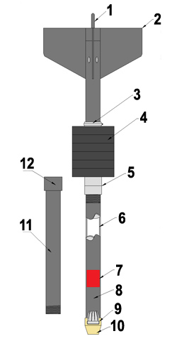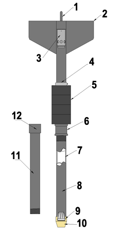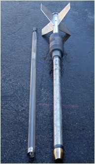 活塞取樣管需要一個(gè)觸發(fā)裝置來(lái)操作,觸發(fā)裝置觸底之后,會(huì)釋放取樣主體,使其在距地5m的高度自由落體。和重力取樣管使用閥不同,活塞取樣管的內(nèi)襯管中安裝了一個(gè)活塞,并在取樣前置于內(nèi)襯管的底部,這樣活塞就阻止了在下放過(guò)程中水流的通過(guò)。當(dāng)采樣管扎進(jìn)泥樣中后,活塞會(huì)被迫與泥樣一起提升,活塞與布放線纜相連,并在上升過(guò)程中形成真空,減少樣品流失。